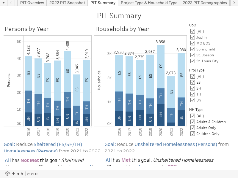The St. Louis City CoC reports aggregated data to the U.S. Department of Housing and Urban Development (HUD) so that HUD can better understand the impact that its funding is having on the goal of ending homelessness in the United States and can allocate the appropriate amount of funding to further that goal. The St. Louis City CoC also routinely reviews and analyzes data so that decisions can be made as to the efficacy of projects, the impact of the types of projects, and to spot gaps in housing and services.